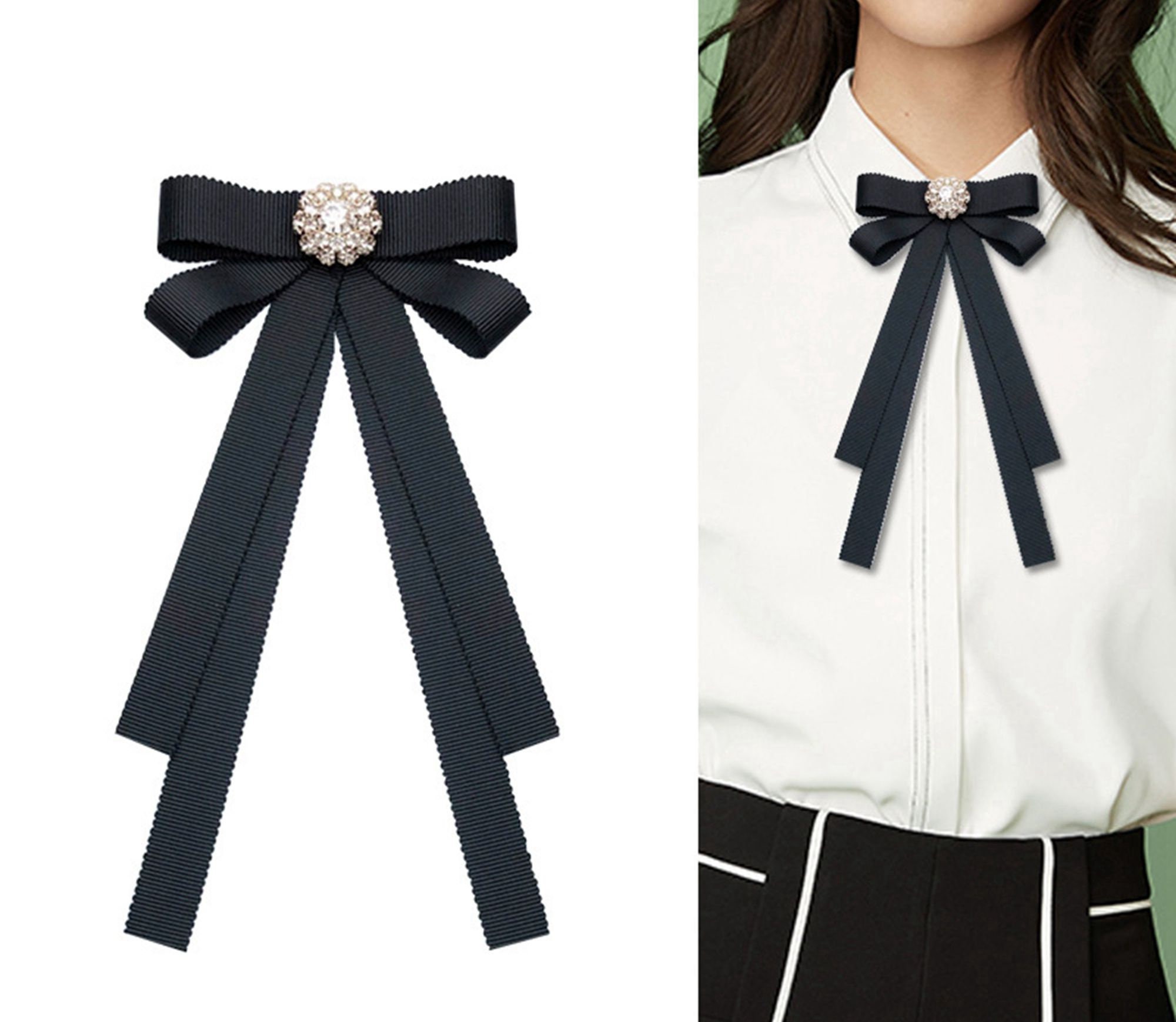 Women's bow tie brooch clearance, Ribbon Crystal Neck Tie Brooch Pin Bow clearance