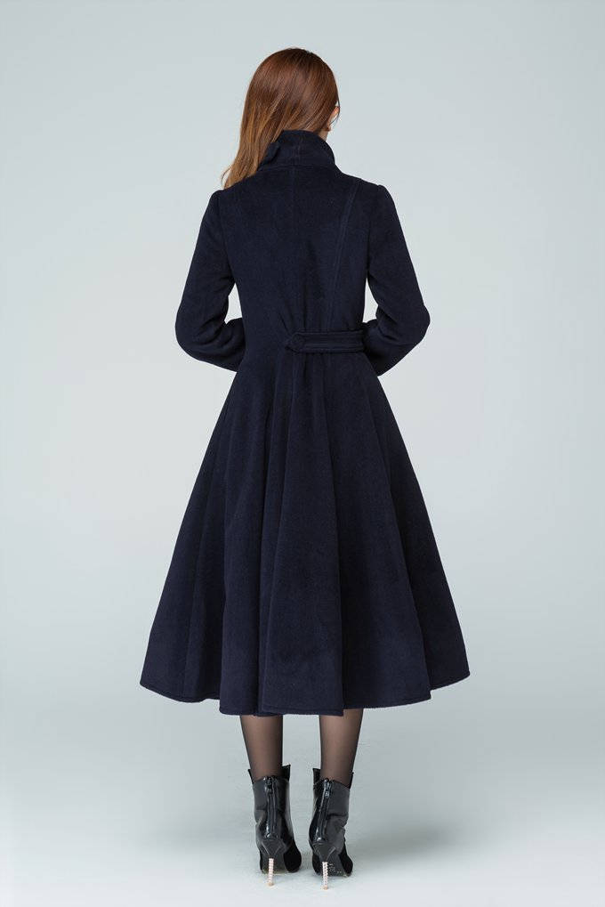 Navy midi coat clearance, Navy Blue Coat Wool Coat Warm Winter clearance
