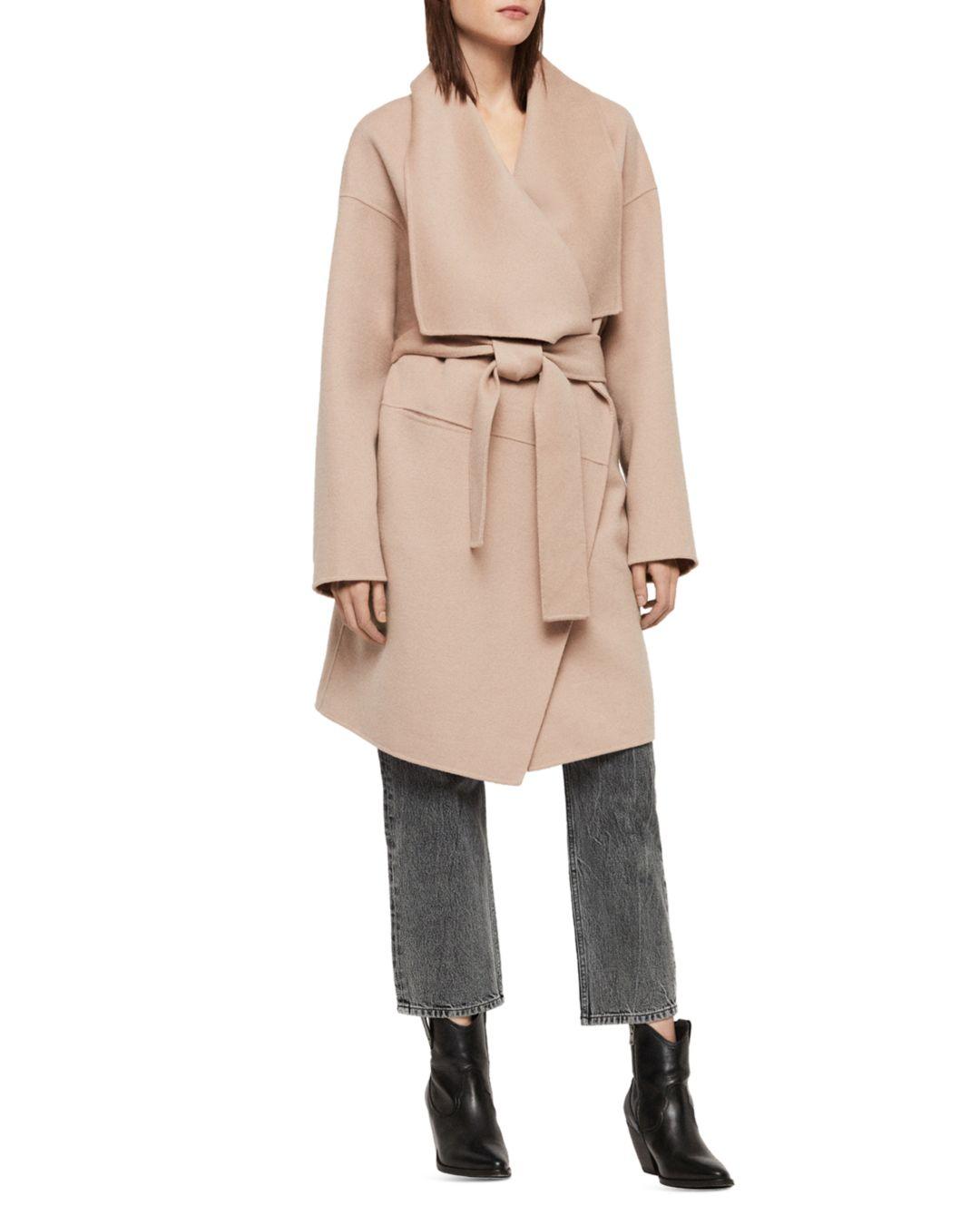 Allsaints adalee coat clearance, AllSaints Adalee Wrap Coat in Oatmeal clearance