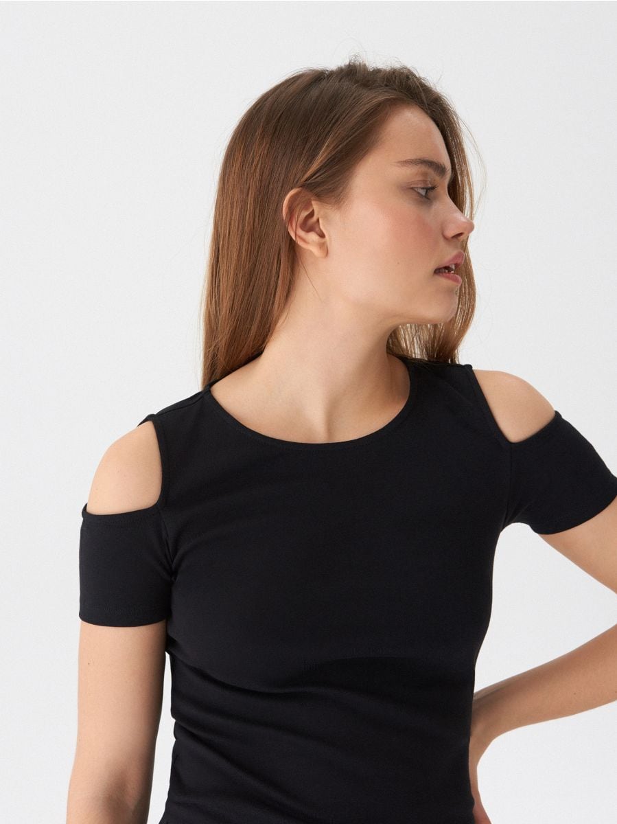 - Black cold shoulder t shirt shop