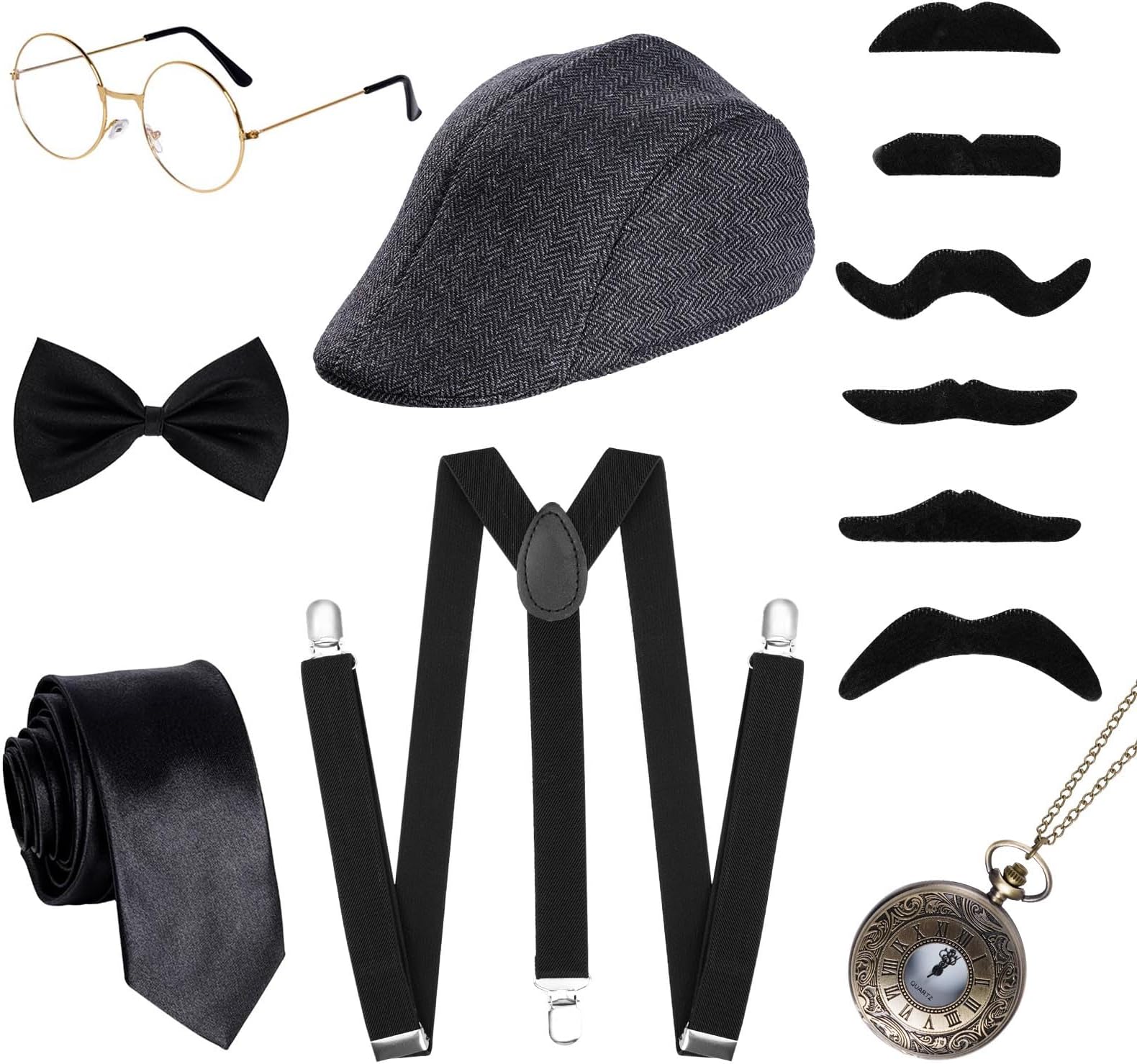 1920s costume ideas male clearance, Mukum 11PCS 1920s Mens Costume Gangster Costume Men Set with Foldable Crutches Hat Suspenders Pocket Watch Glasses Tie clearance
