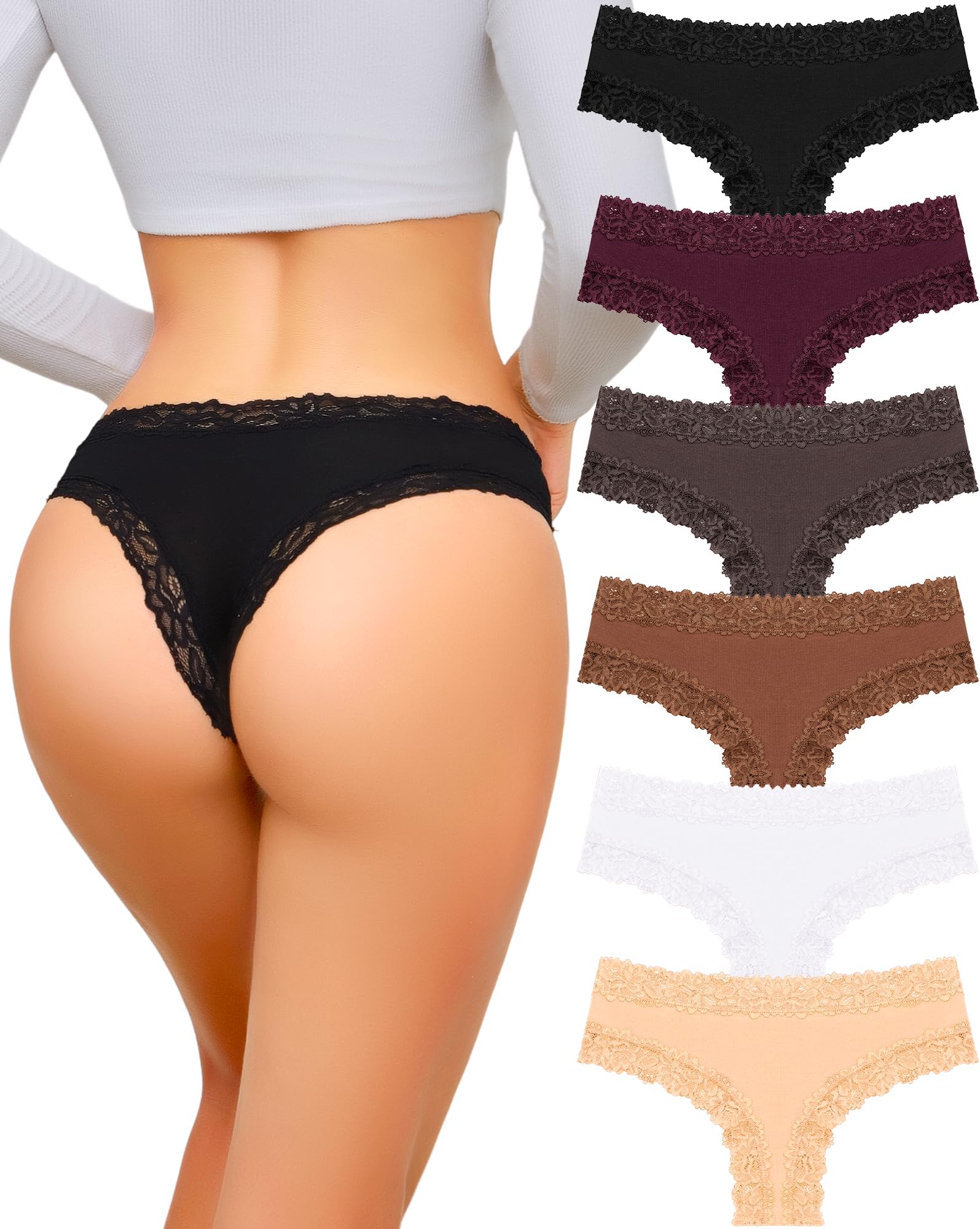 100 cotton brazilian knickers clearance, POWER UNICO FLOWER Womens Cotton Brazilian briefs Multipack Lace knickers Delicate Lace Trimmed (6pieces) clearance