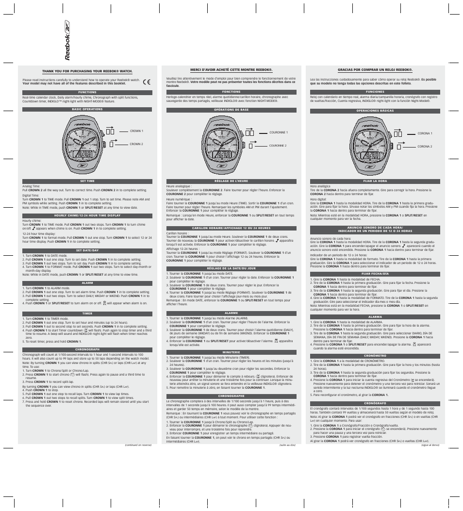 Emploi reebok clearance, Reebok W-112 User Manual | 2 pages clearance