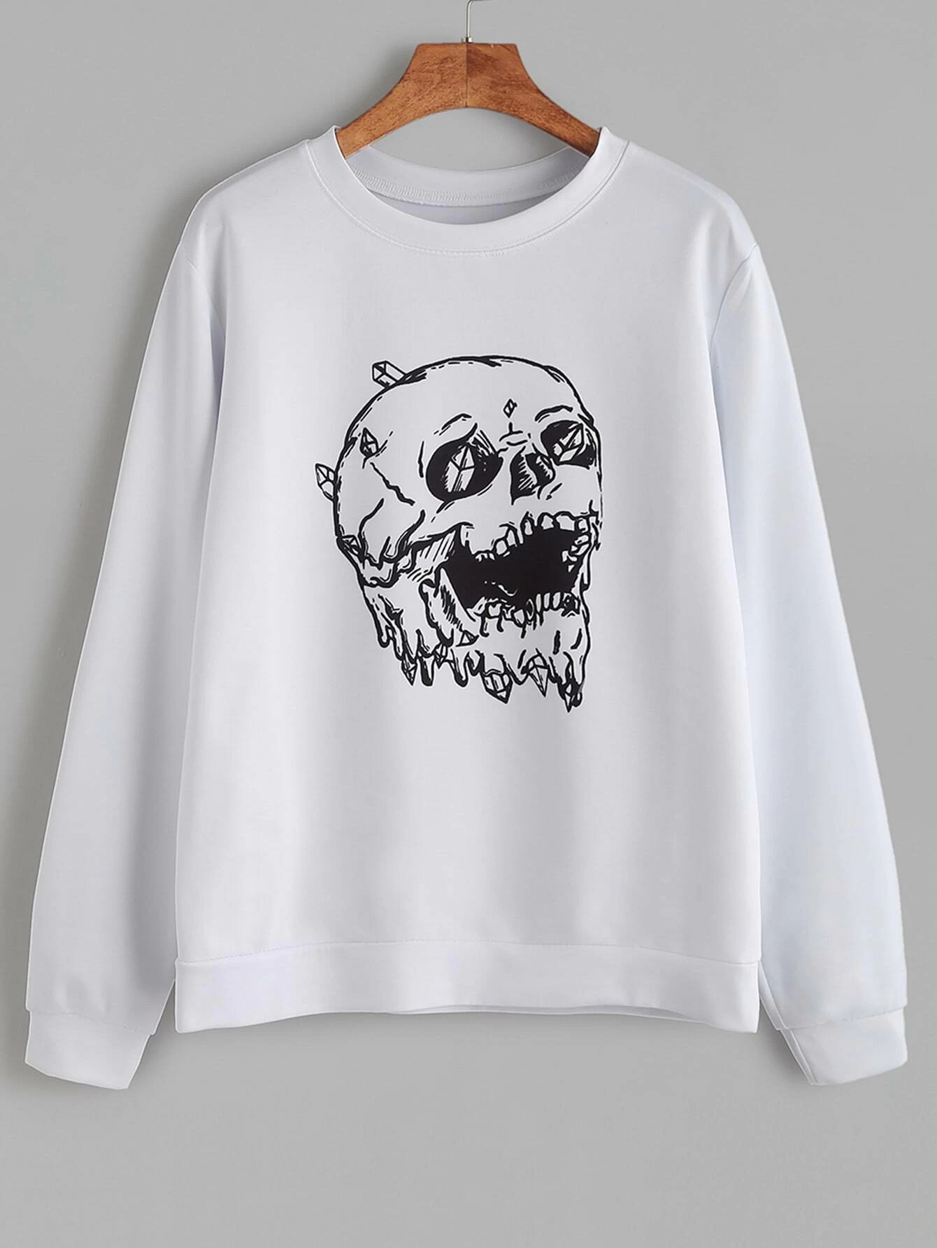 - Shopping White skull print casual sweatshirt