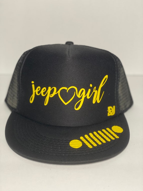 Yellow jeep hat clearance, Jeep Girl truckers hat Snap Back Cap clearance