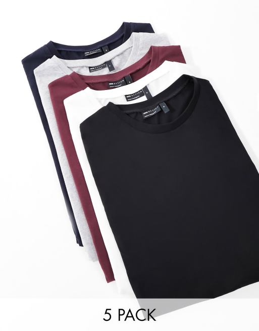 Asos lot t shirt clearance, ASOS DESIGN 5 pack t-shirt with crew neck in multiple colors | ASOS clearance