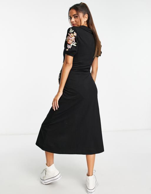 Asos maternity midi tea dress clearance, ASOS DESIGN Maternity – Ultimate – Midi-Teekleid mit Kragen und Blumenstickerei in Schwarz | ASOS clearance