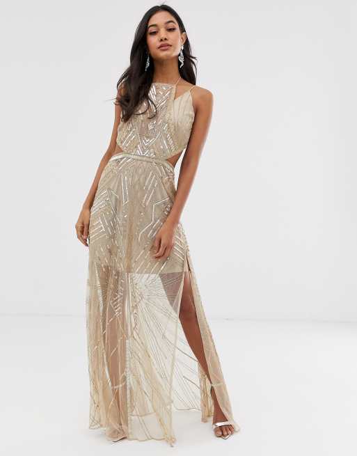 Asos design maxikleid clearance, ASOS DESIGN maxi dress with geometric embellishment and sheer panels | ASOS clearance