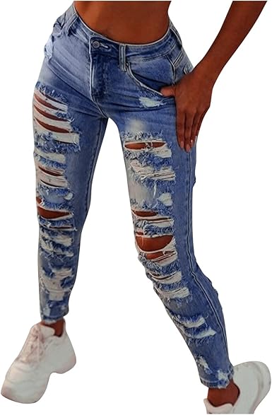 Ripped pants for women clearance, Women Ripped Jeans Streewear Skinny clearance
