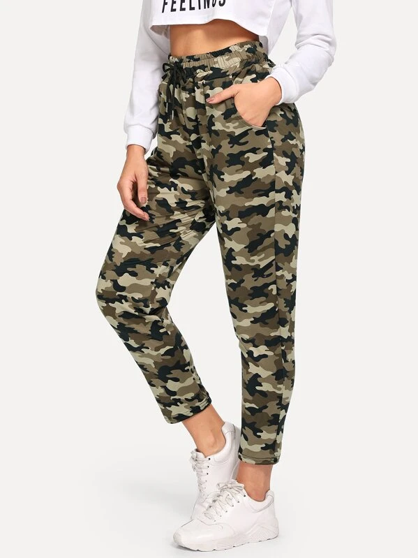 Romwe camo pants clearance, Drawstring Waist Camo Joggers | ROMWE USA clearance