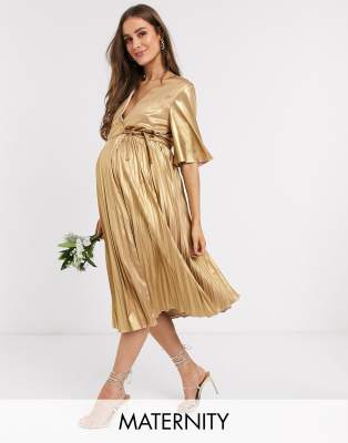 - Gold pleated midi dress sale online