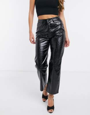 Croc embossed pants clearance, NA-KD embossed croc faux-leather pants clearance