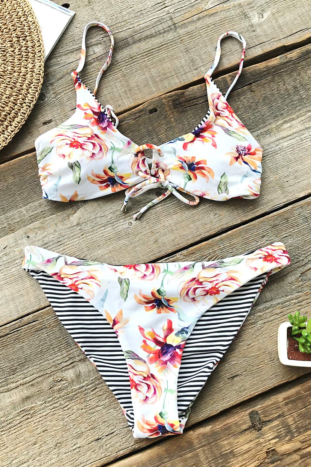 - Cupshe floral and striped reversible bikini shop