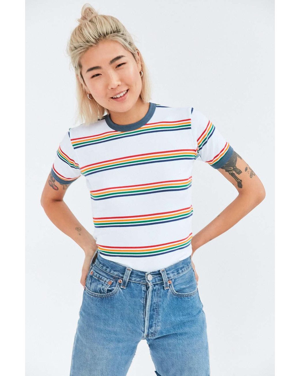 - Rainbow striped ringer tee outlet