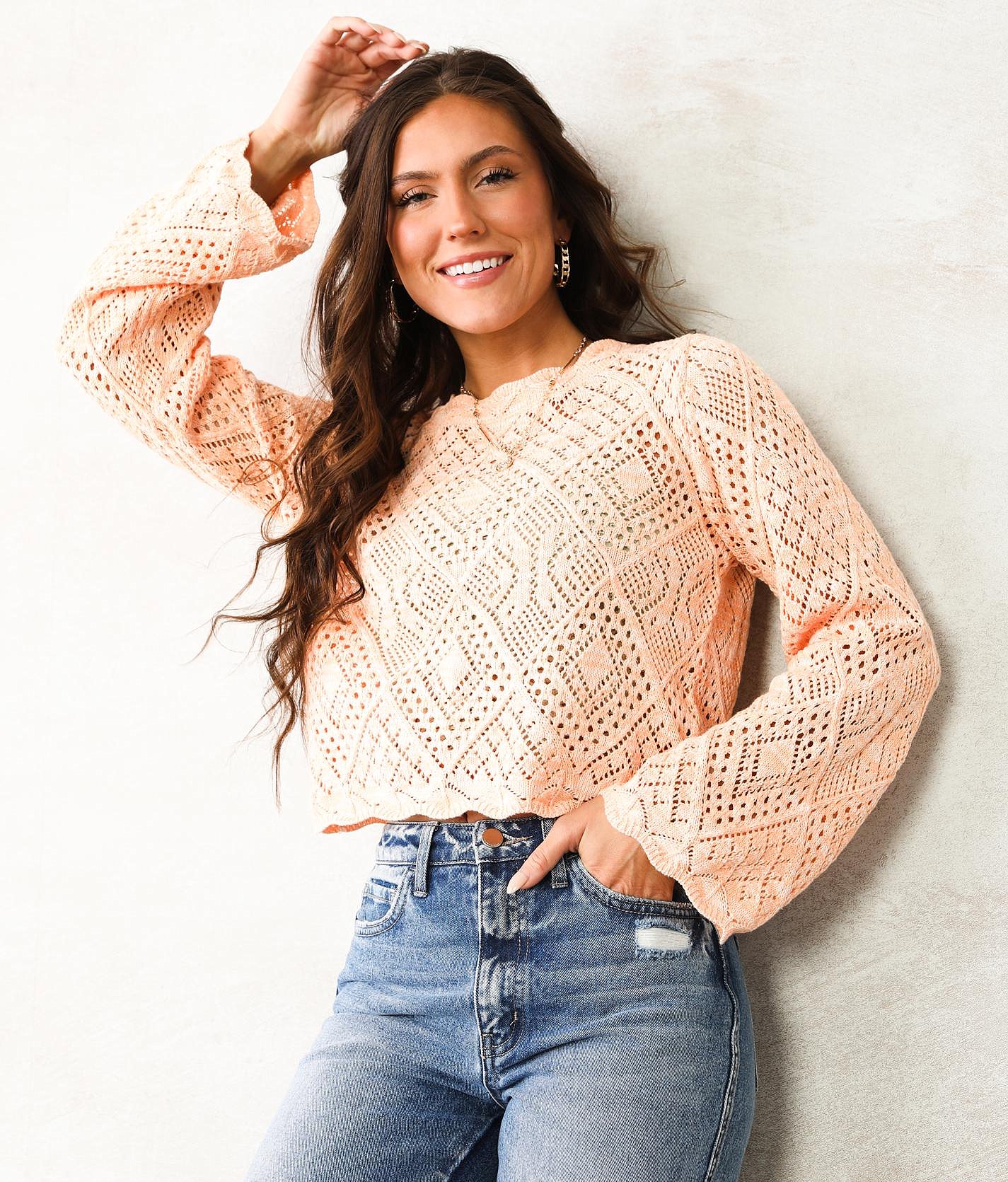 Pointelle sweater clearance