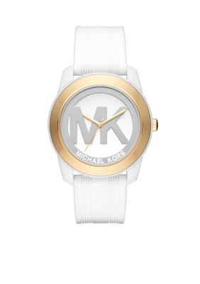 Belk womens michael kors watches clearance, Michael Kors Women's Gold-Tone Preston White Silicone Strap Watch | belk clearance
