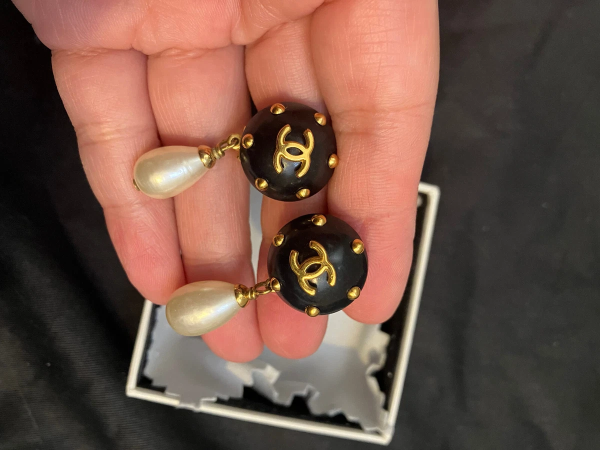 Ebay cc earrings clearance, Chanel Earrings Vintage Round Pearl Gold Border Before 1980 Boxed Free Pu0026P RARE | eBay clearance