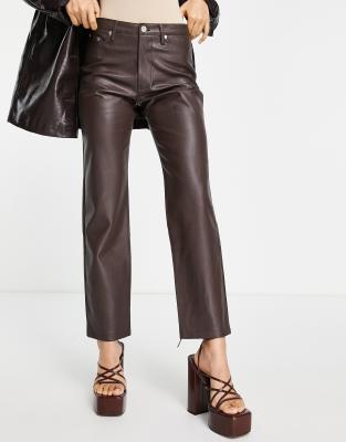 Petite leather trousers brown clearance