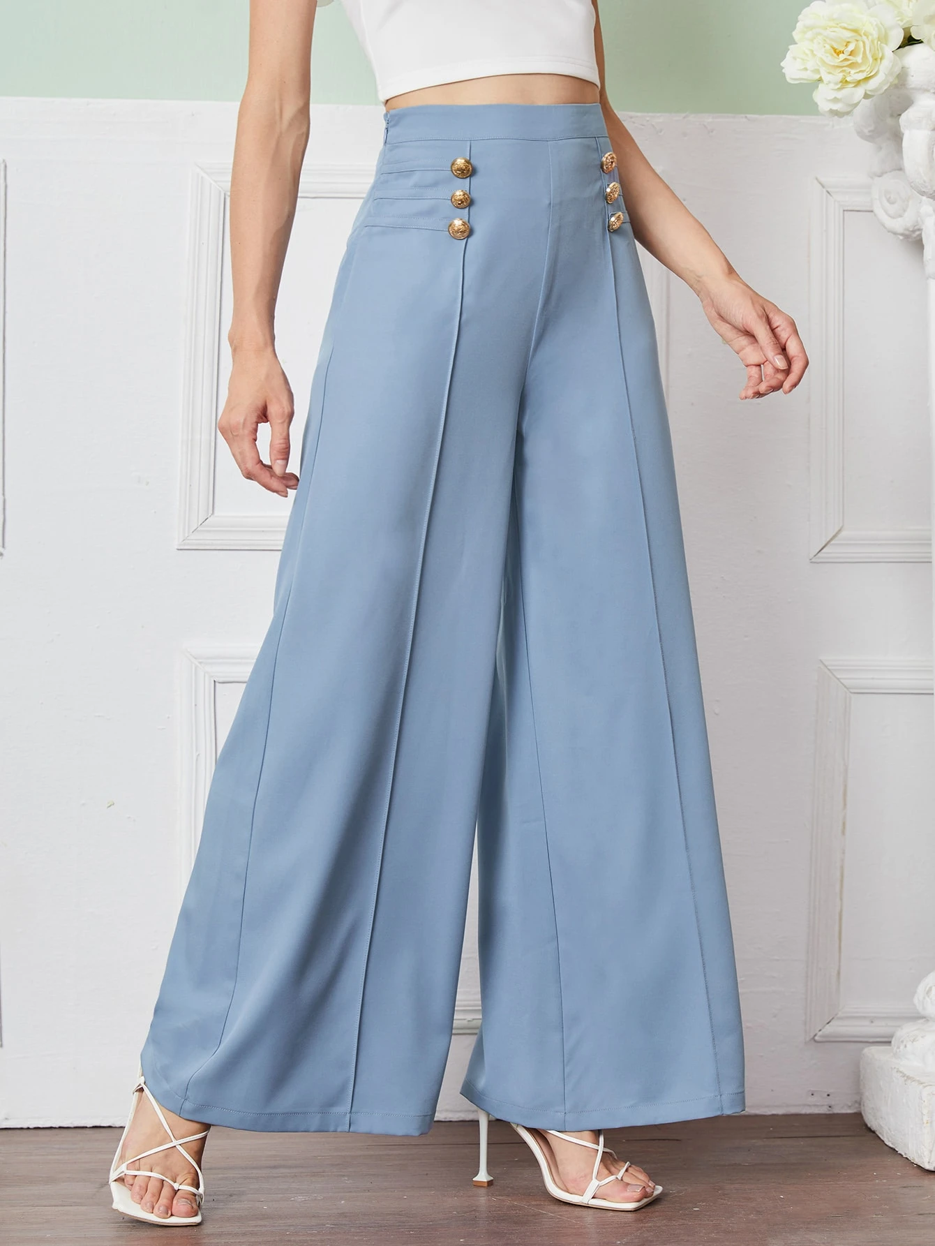 - Double breasted wide leg pants sale online
