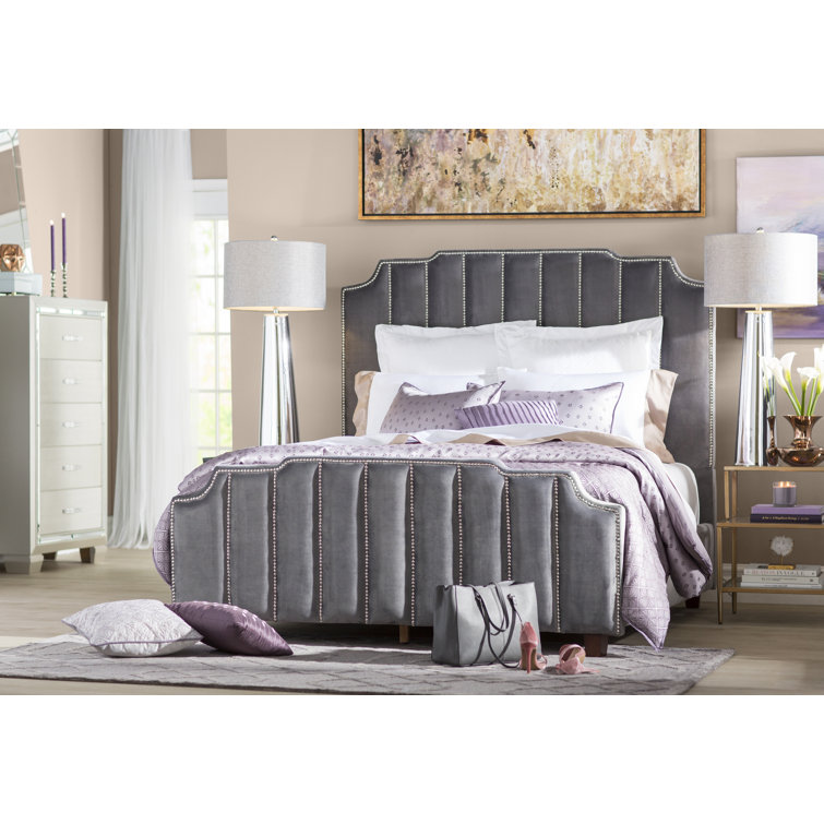 Elof velvet upholstered panel headboard clearance, Chareau Velvet Upholstered Nailhead clearance