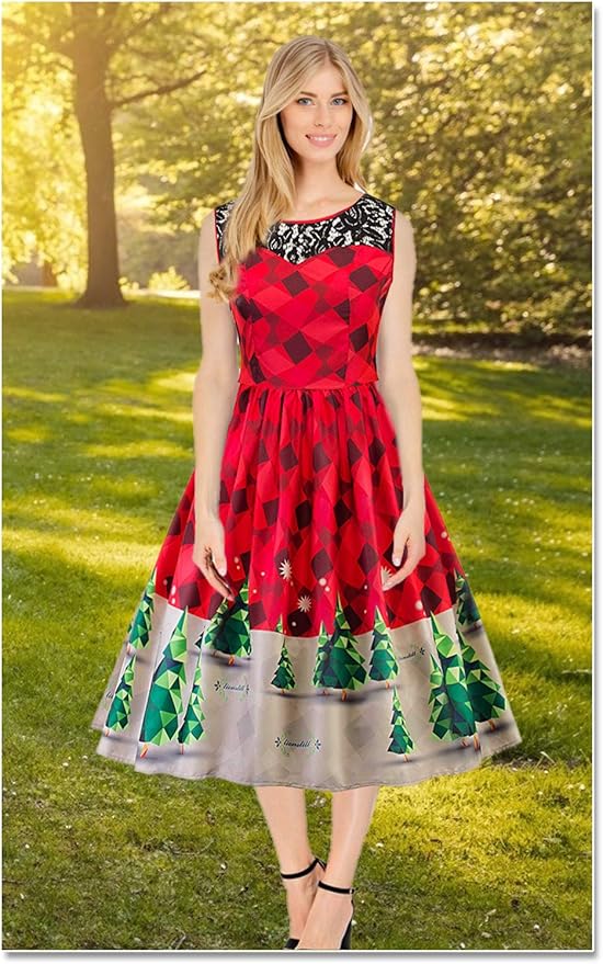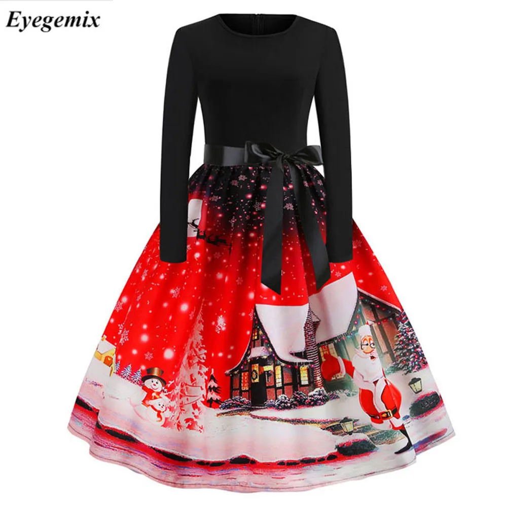 50's christmas dress clearance, Vintage Print Christmas Dresses Women clearance