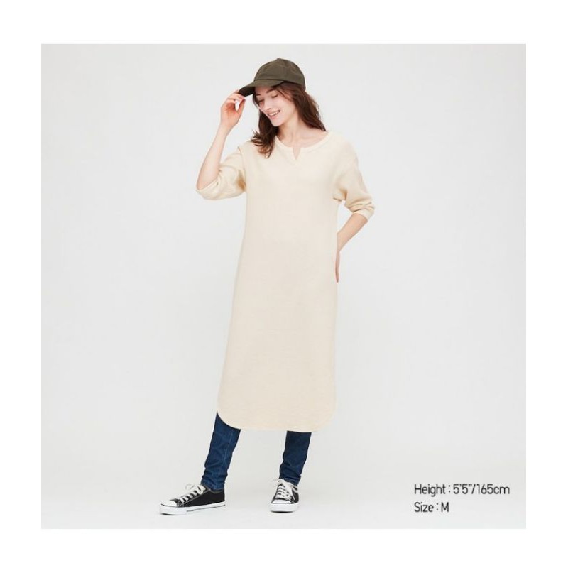 Uniqlo dress malaysia clearance, Woman Waffle Key Neck 3/4 Sleeve Dress clearance