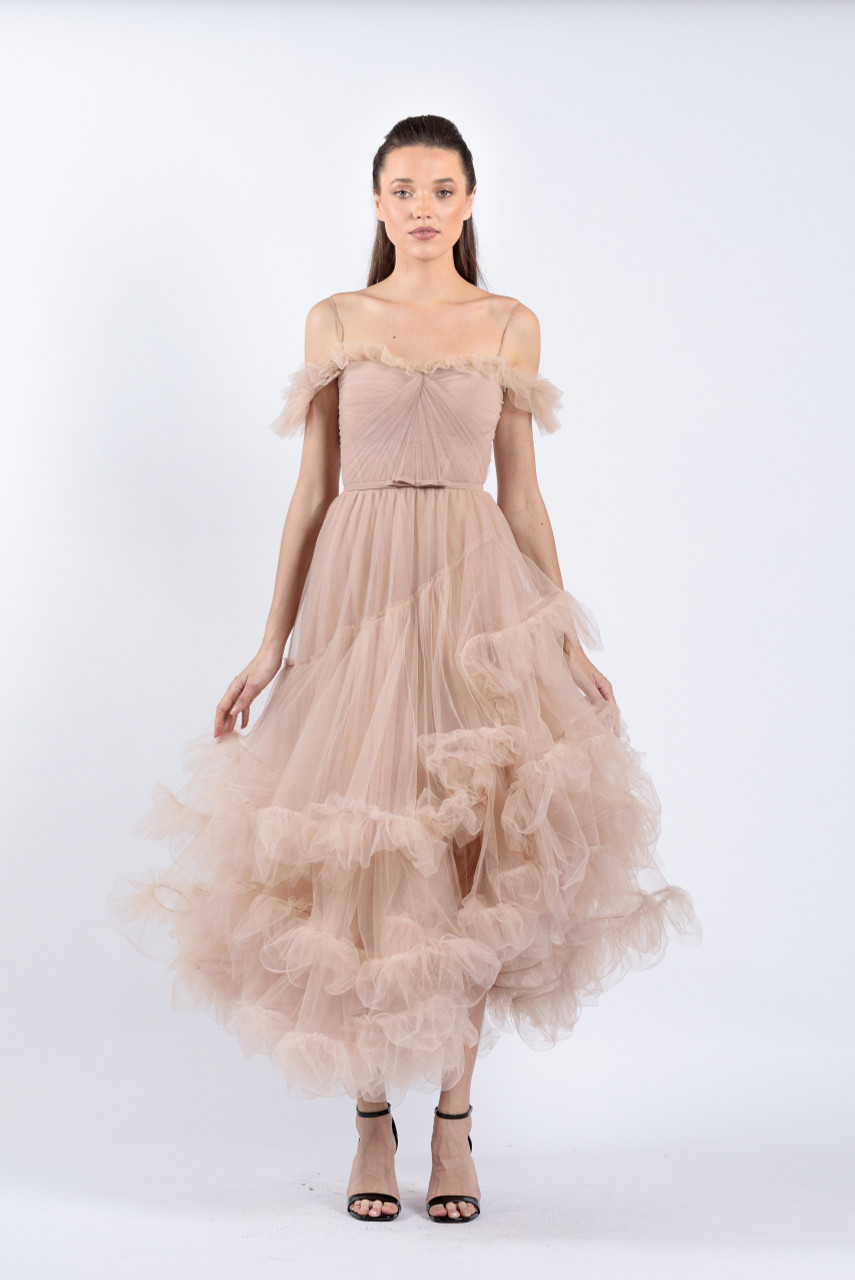 - Tulle off shoulder dress