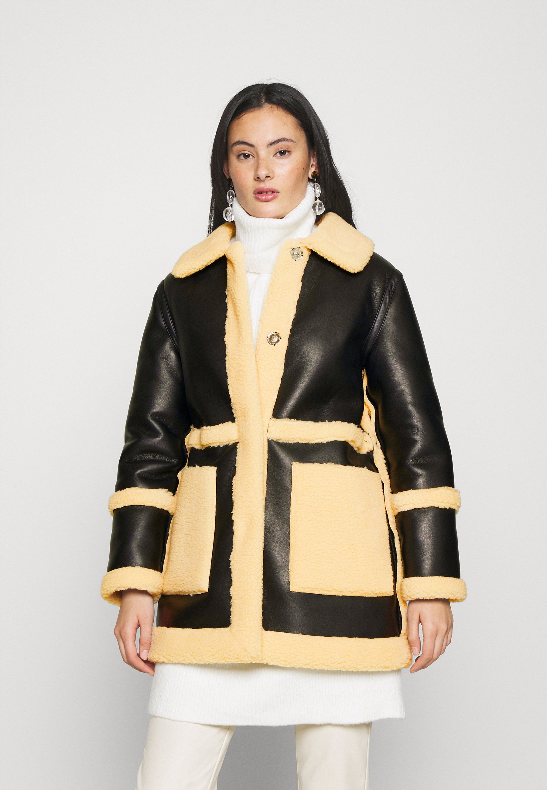Topshop reversible borg jacket clearance, Black Reversible Borg and Tan PU Coat clearance