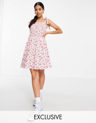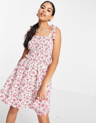 Kleid mit trägern zum binden clearance, Swing-Kleid mit Trägern zum Binden und Blumenmuster clearance