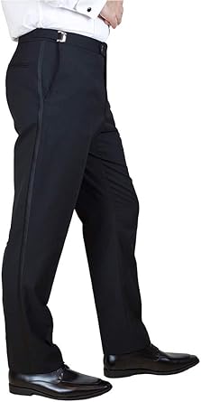 Satin stripe tuxedo trousers clearance, Wool Fitted Flat Front Tuxedo Pants clearance
