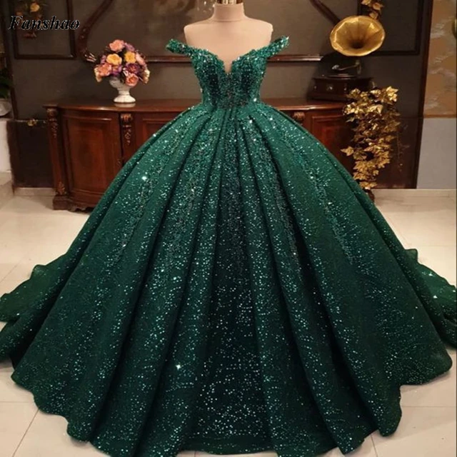 Prinzessinnen kleider kaufen clearance, FATAPAESE Luxuriöse Hochzeit Kleid Prinzessin Kleider V-ausschnitt Perlen Illusion Floral Sleeve Sparkly Kristall Flauschigen Rock Braut Kleid clearance