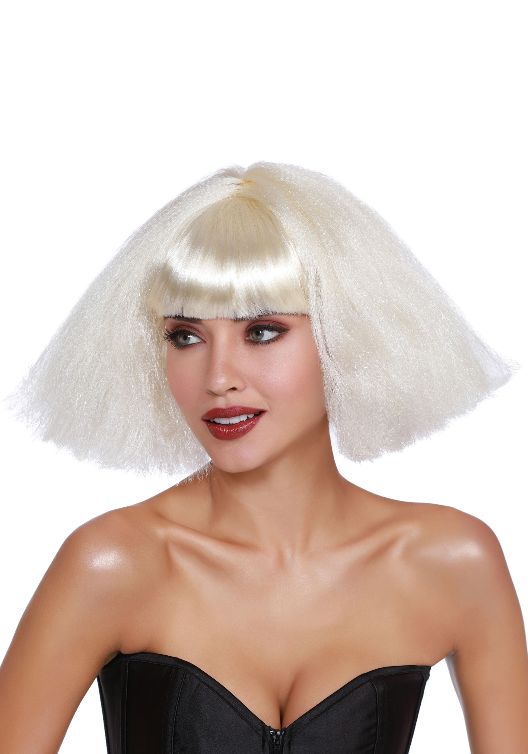 White bob wig clearance, Women's White Crimped Wedge Bob Wig clearance