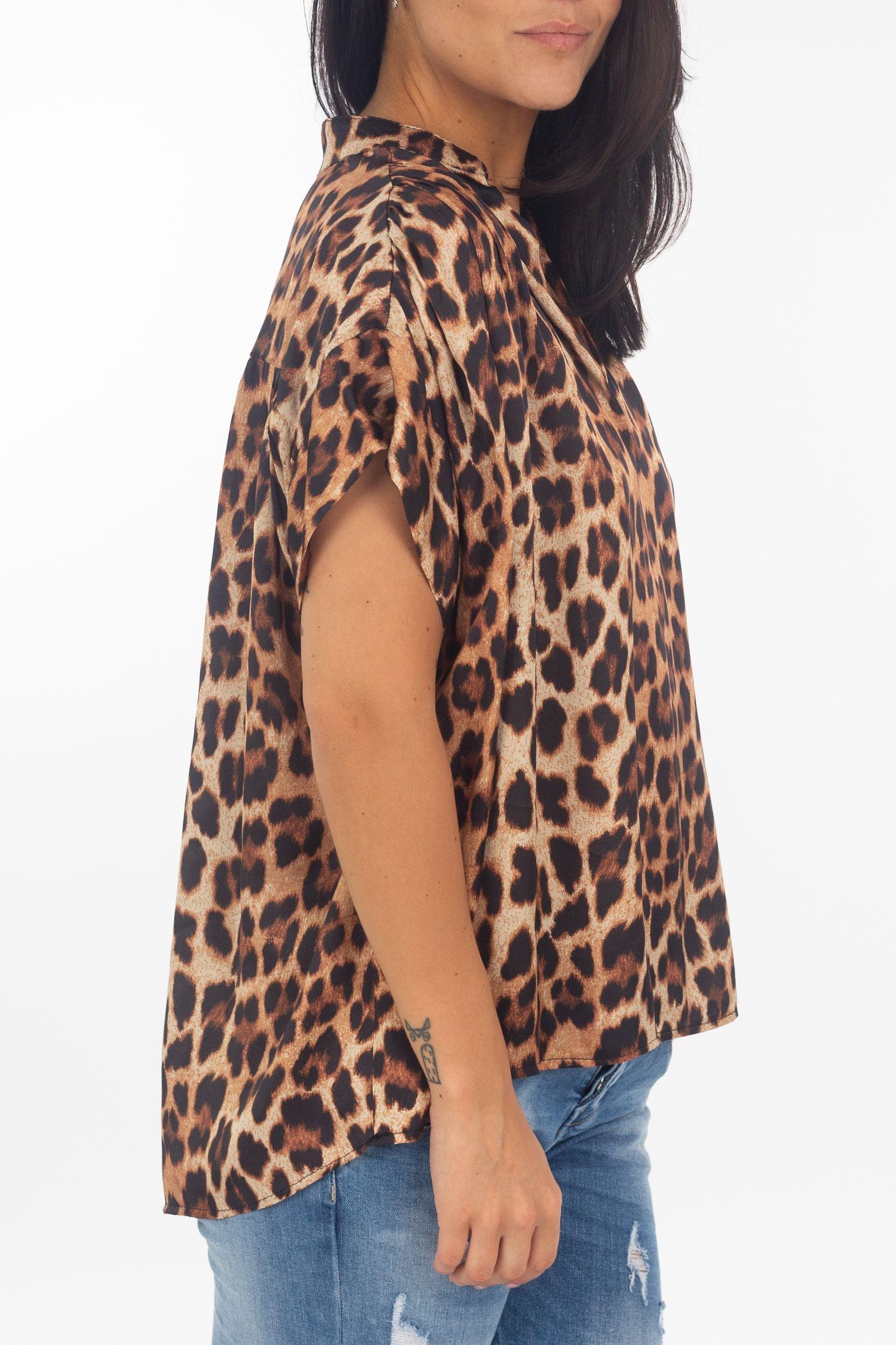 Leo bluse seide clearance, Leo-Kurzarmbluse aus Viskose-Seide clearance
