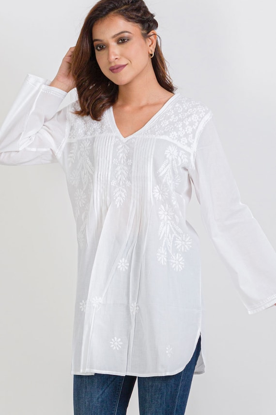 Bestickte weisse tunika clearance, Divya weiße Hand bestickte Tunika - Etsy.de clearance