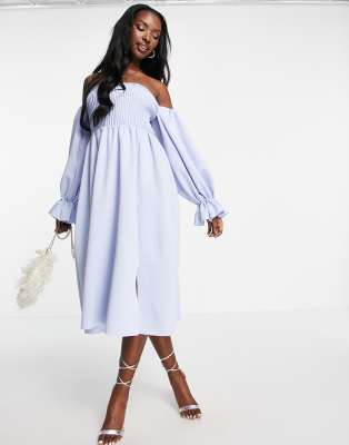 Asos design midi ballkleid clearance, ASOS DESIGN – Midi-Ballkleid mit Carmen-Ausschnitt und Korsett-Design in Blau clearance