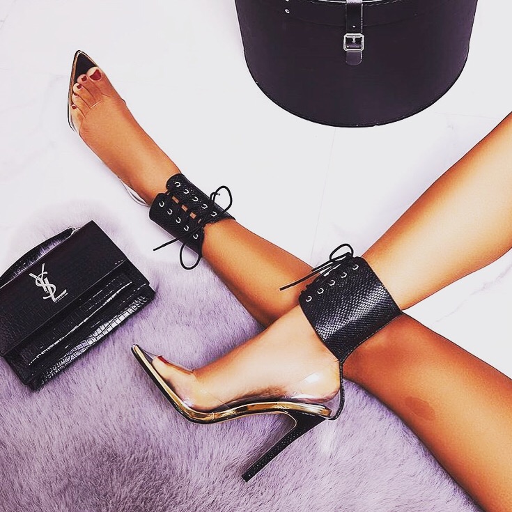 - Black perspex pointed heels