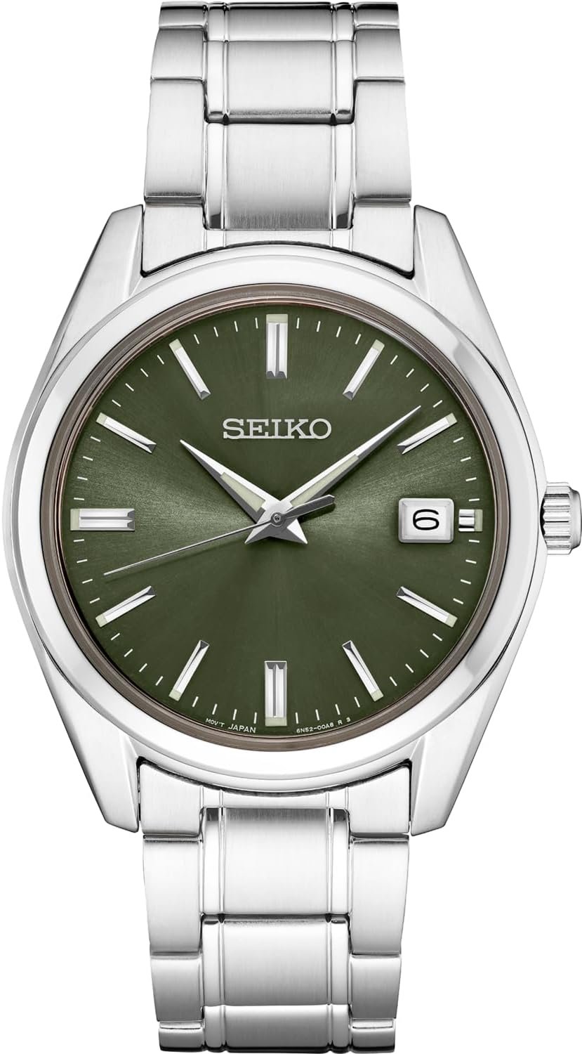 6n52 seiko clearance, Seiko SUR314 Watch for Men - Essentials - White Dial, Date Calendar, LumiBrite Hands, Gold-Tone Stainless Steel Case & Bra... clearance