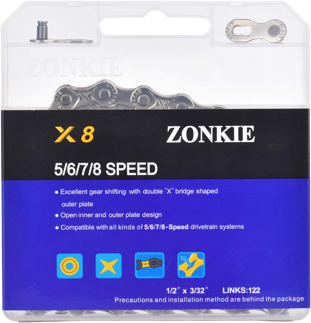 56 link bike chain clearance, 5/6/7/8 Speed Bike Chain 1/2 x 3/32 Inch 122 Links clearance