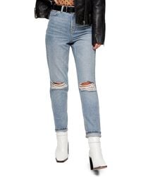- Bleach wash double rip mom jeans sale online