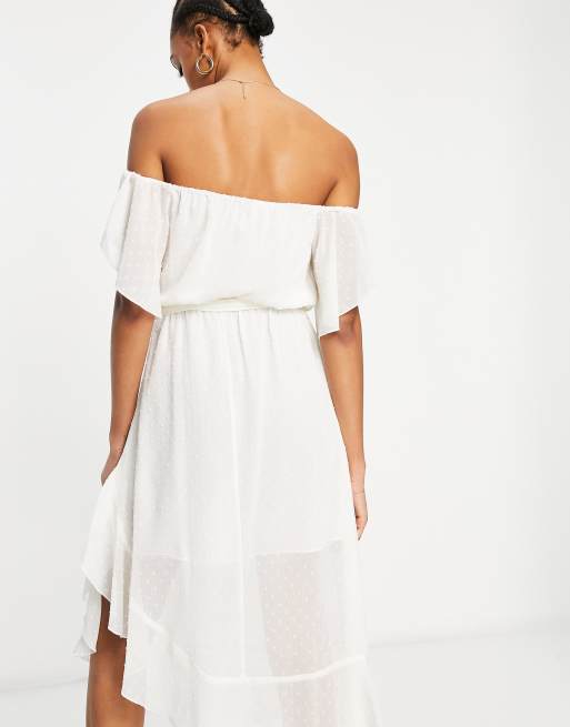 White bardot dress river island clearance, River Island textured bardot frill midi dress in white | ASOS clearance