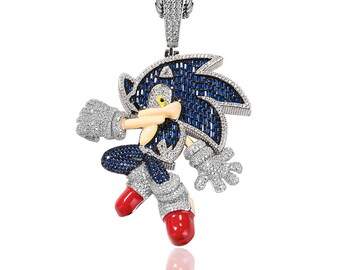 Sonic the hedgehog diamond chain clearance, Fully iced Sonic the Hedgehog with enamel Red/Blue – Bijouterie Gonin clearance