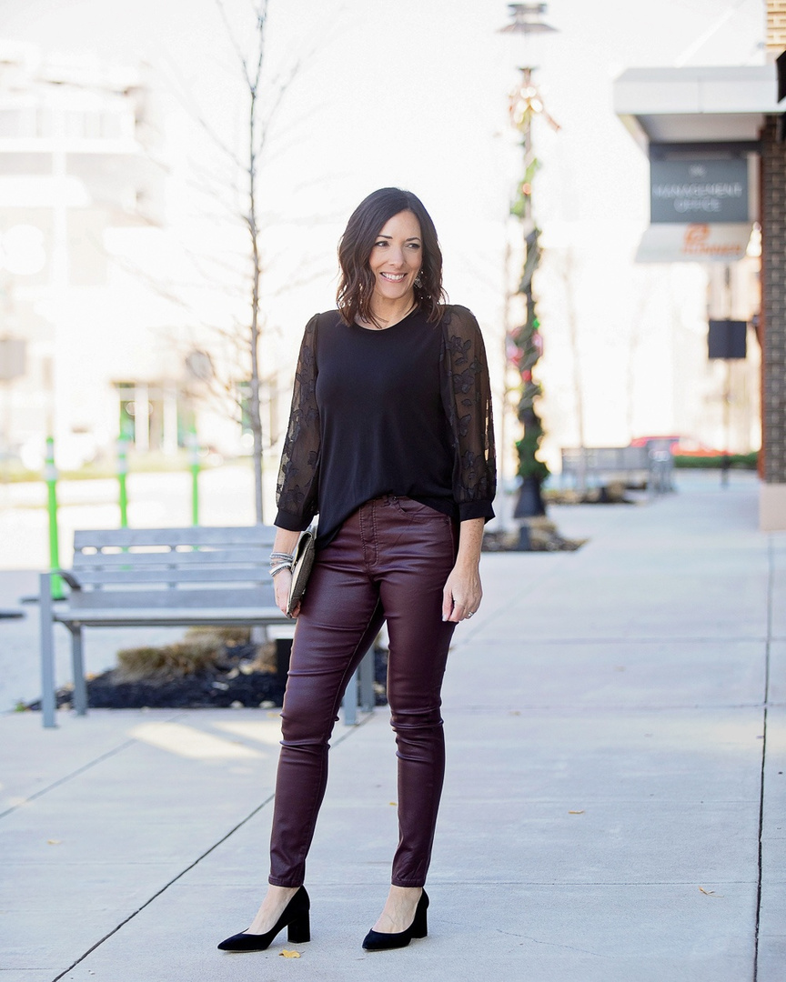 - Cece lace sleeve stretch crepe blouse