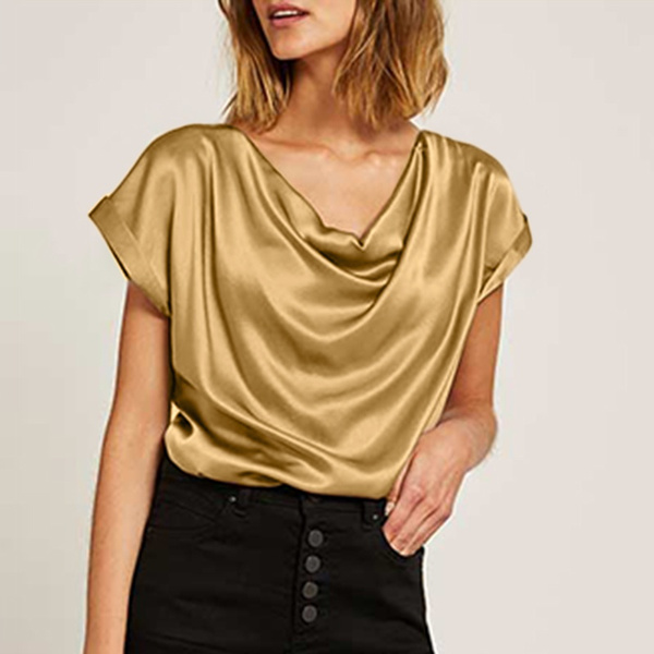 Cowl neck blouses clearance, Silver Satin Cowl Neck Blouse clearance