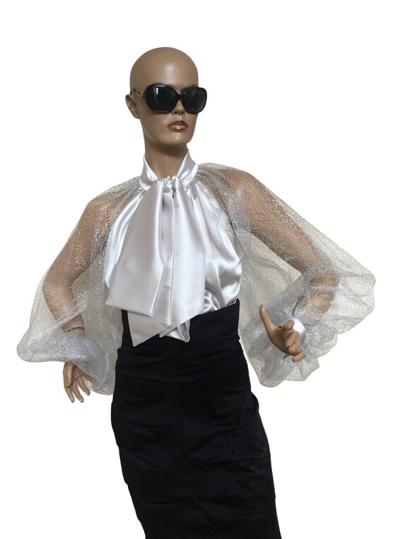 Silver blouse uk clearance, Formal Womens Satin Lace Blouse/ Silver clearance