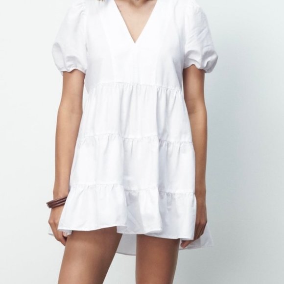 - Zara white tiered mini dress shop