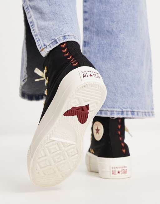 Black platform converse with red heart clearance, Chuck Taylor All Star Lift Platform Embroidered Hearts Women's High Top Shoe. Converse.com clearance