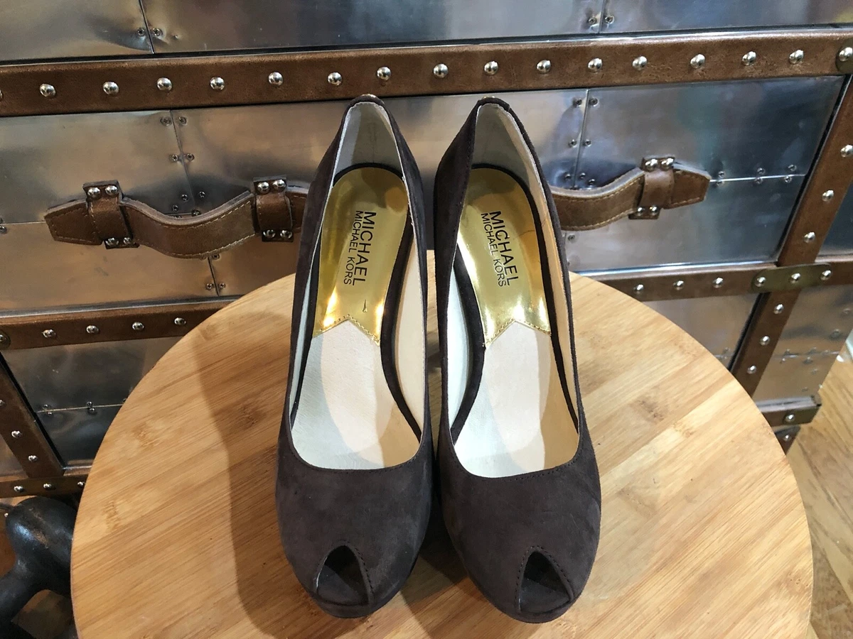Michael kors brown suede heels clearance