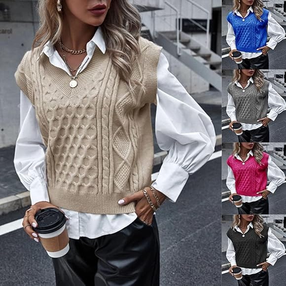 ärmellose weste strick clearance, shownicer Damen V-Ausschnitt Stricken Weste Pullunder Ärmellos Strick Casual Pullunder Strickweste Geometrie Einfarbig Casual Strick Tank Top Business Sweater Z Blau S : Amazon.de: Fashion clearance