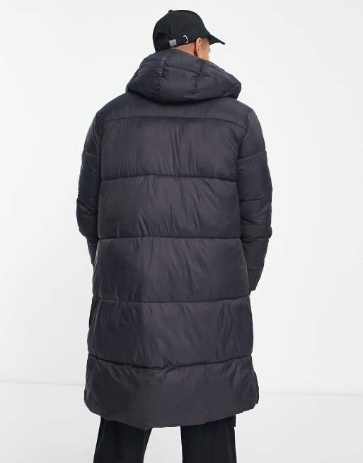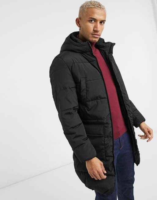 Asos jack and jones coat clearance, Jack u0026 Jones Essentials longline puffer coat with hood in black with double zip | ASOS clearance