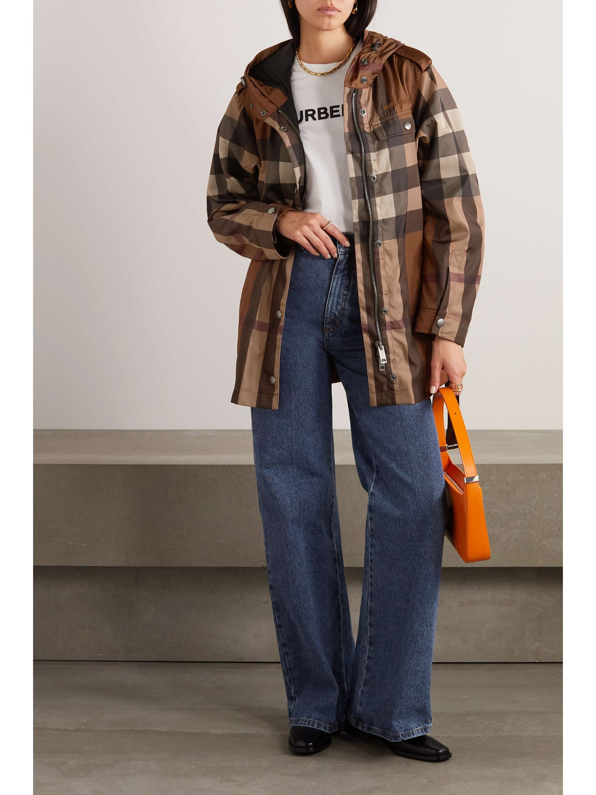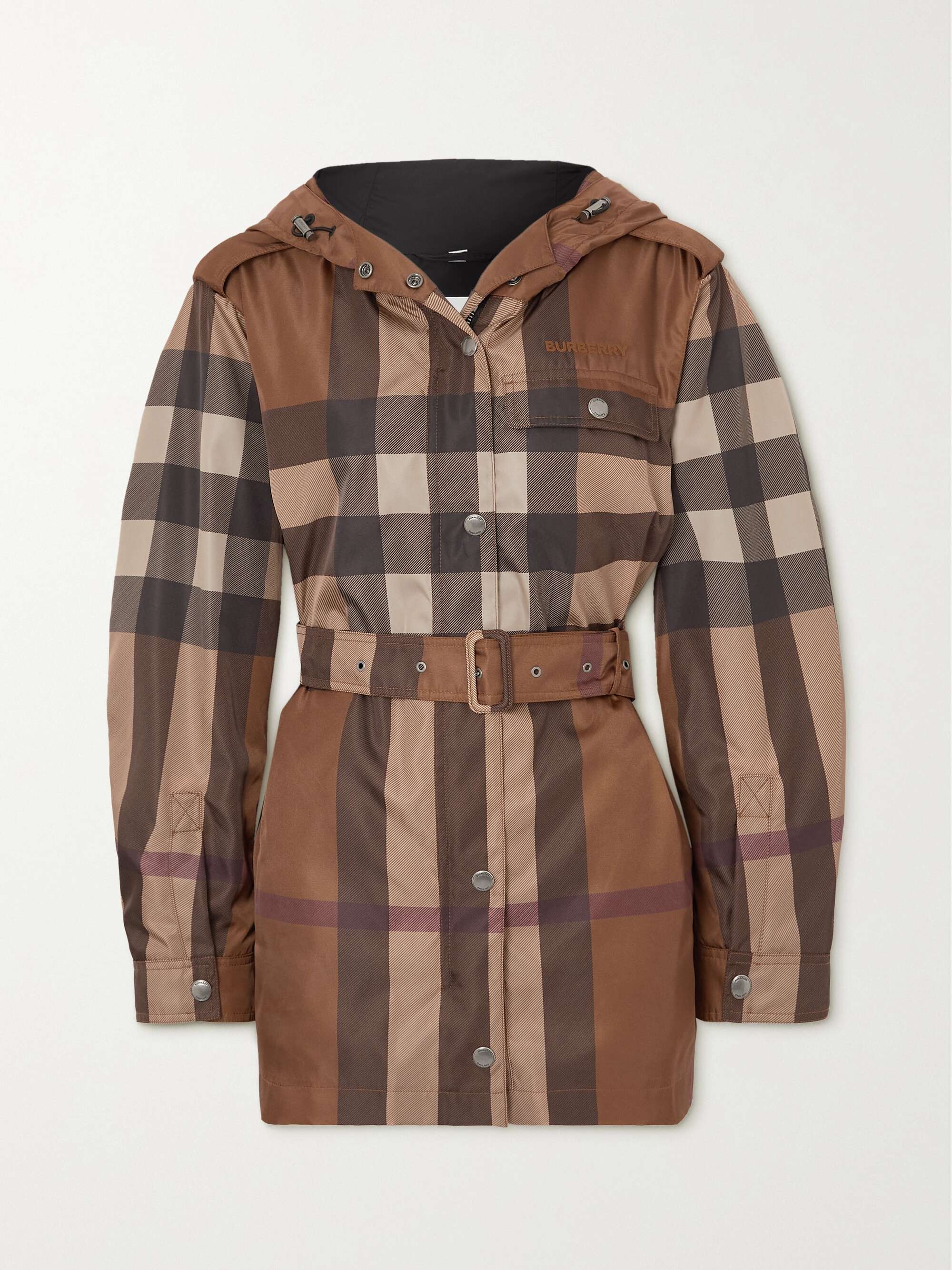 Burberry shell jacket clearance, BURBERRY Hooded belted checked shell jacket | NET-A-PORTER clearance